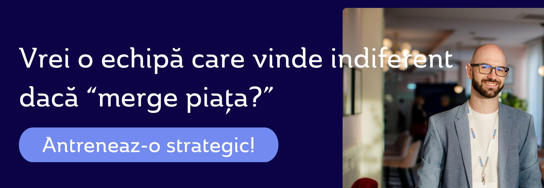Treci de la vânzare la parteneriat strategic. Înveţi să câștigi un loc la masa deciziilor clientului, să afli adevăratele lui nevoi de business și să simplifici procesul de cumpărare.